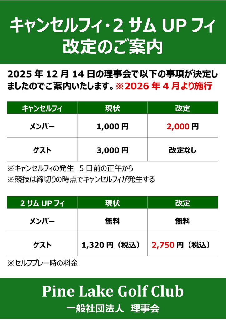 キャンセルフィ・2サムUPフィ改定のご案内