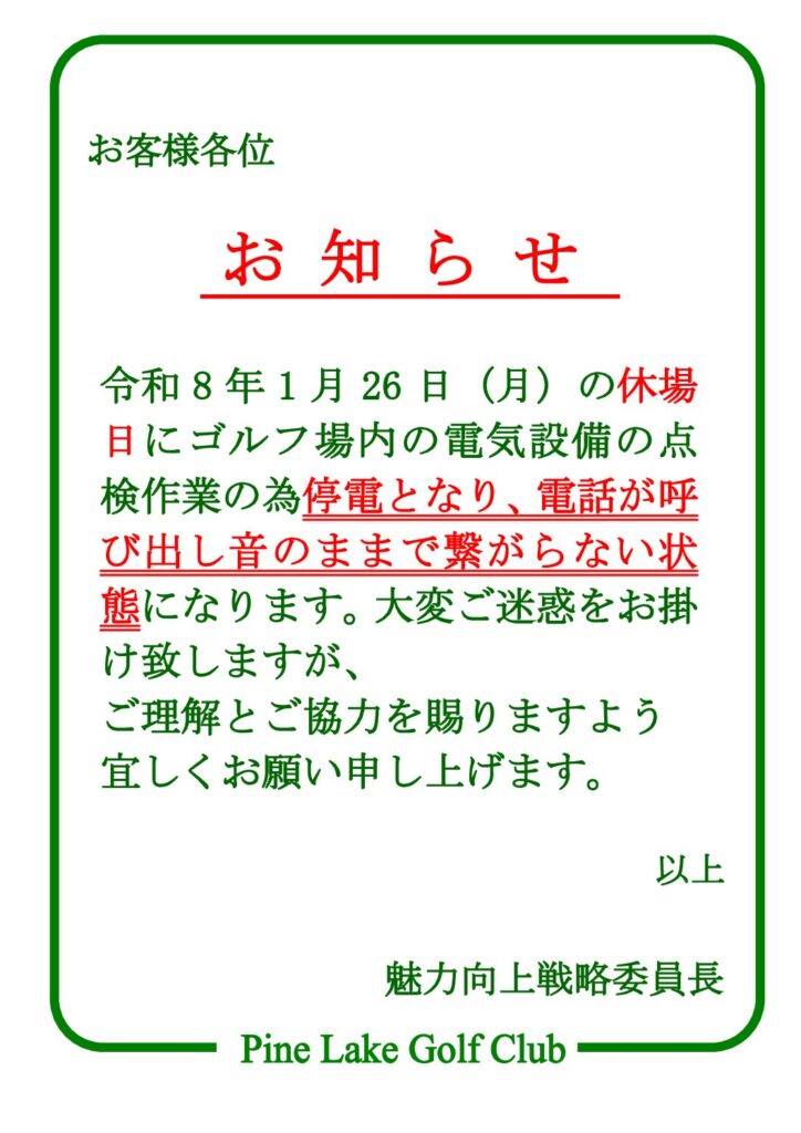 施設停電のお知らせ